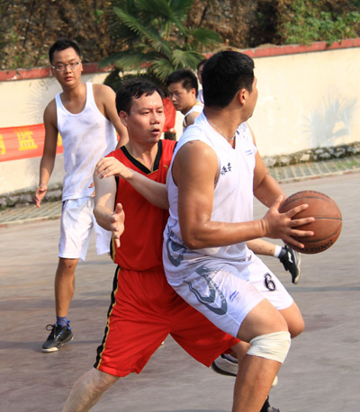 图片分别为销售员接力跑比赛和南北销区篮球赛比赛现场