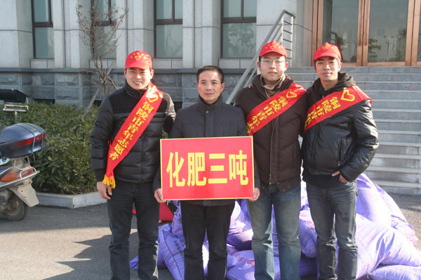 12月27日上午,在铜陵市2014年文化、科技、卫生“三下乡”暨第六届“乡村青年文化节”活动启动仪式上,铜化集团青年志愿者为铜陵县西湖镇群众赠送“yl23455永利集团”牌复合肥和“九华山”牌过磷酸钙共计三吨。赠送化肥已成为此项活动的重头戏。图为活动现场。