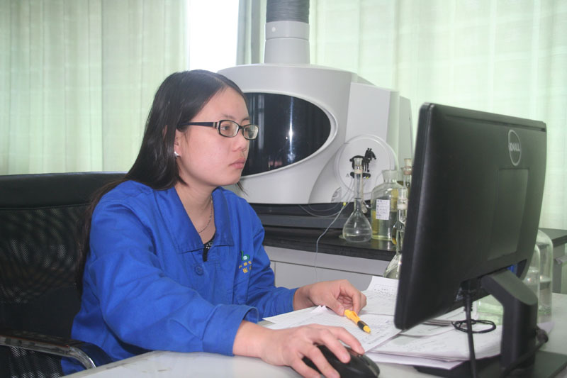 yl23455永利集团公司检验中心仪器分析班员工正在用电感耦合等离子原子发射光谱仪,检测55%磷酸一铵出口产品中的有效磷含量。