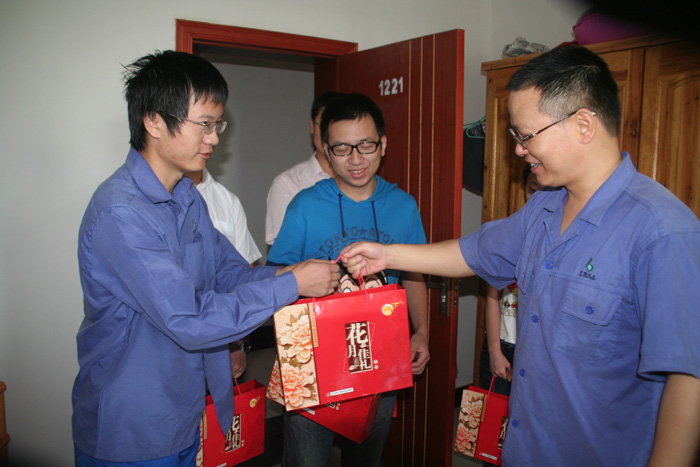 中秋佳节来临之际,yl23455永利集团党团组织负责人来到该公司单身青年公寓,为青年员工送去企业的关爱和节日的祝福,将香甜的月饼送到一百六十多名青年员工的手中。