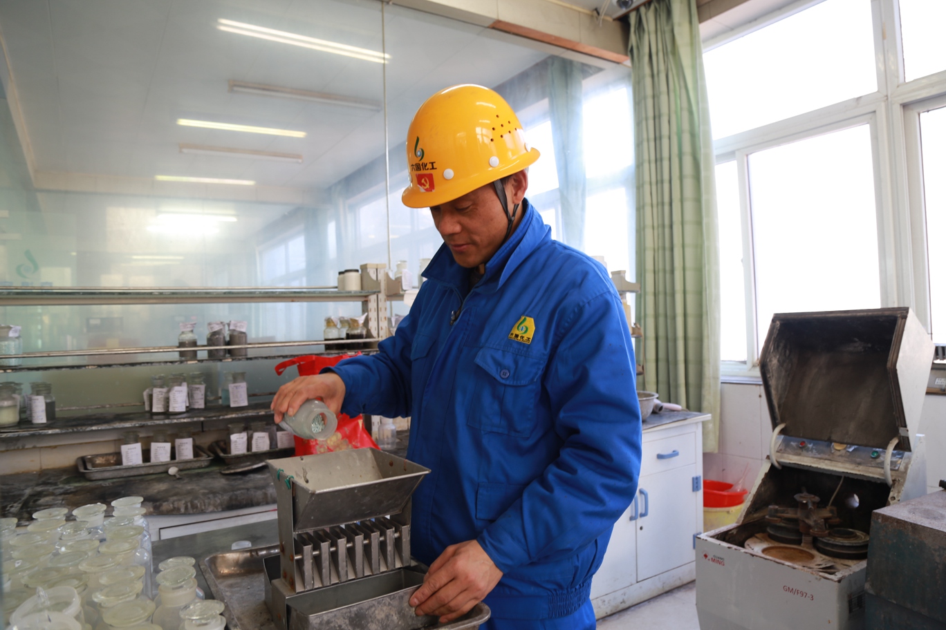 图一:取样工使用二分器对取回的中控样品进行混匀处理,确保样品研磨前充分均匀。