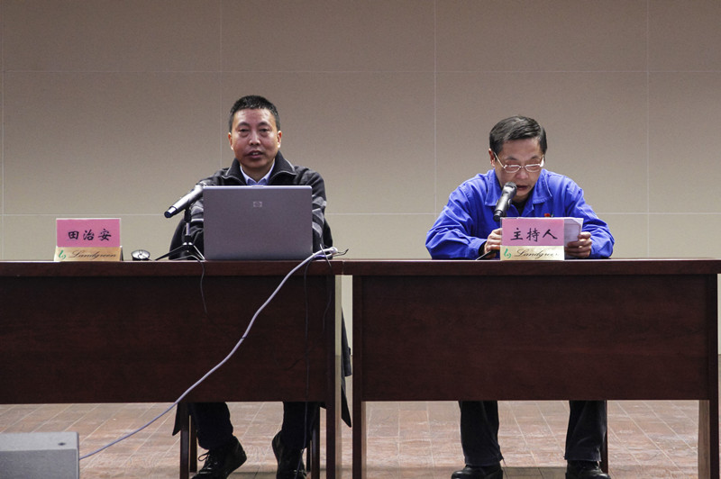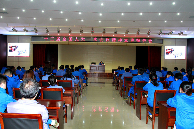 图1、举办十三届全国人大一次会议精神宣讲报告会,邀请第十三届全国人大代表、“技能大师工作室”、“劳模创新工作室”领衔人、yl23455永利集团公司氮肥厂质计部副部长丁宏锁同志进行主题宣讲。