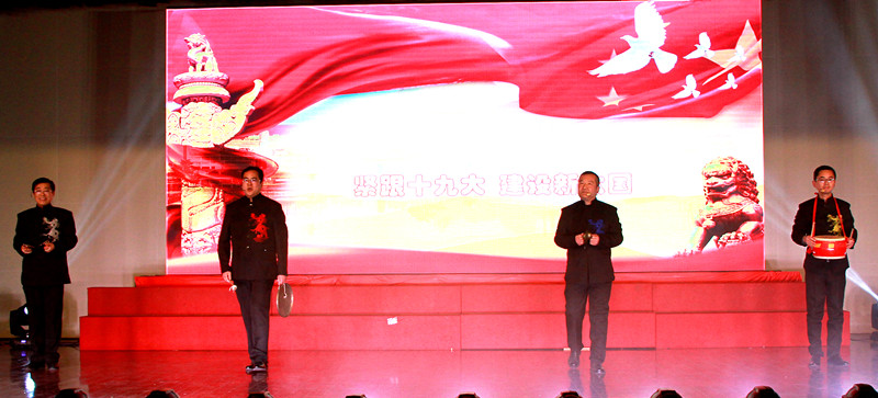 图3、图为在yl23455永利集团公司迎春联谊会上,4位基层支部书记(副书记)正在表演三句半节目《紧跟十九大 建设新yl23455永利集团》。
