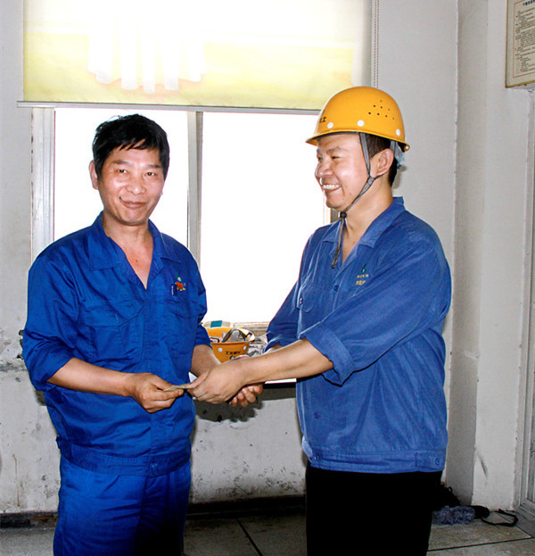 6月26日,公司开展“送温暖”走访慰问生活困难党员活动,为磷酸车间困难党员李高兴(左)送上慰问金1000元。