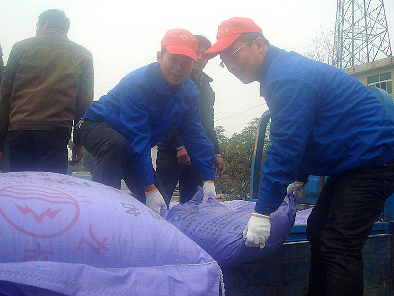 1月20日上午,铜化青年志愿者来到铜陵县钟鸣镇,开展送农资下乡活动,为该镇金山村、清泉村赠送“yl23455永利集团”牌复合肥和“九华山”牌过磷酸钙共计三吨,并将农化服务手册送到农民朋友的手中,指导用户科学施肥。
