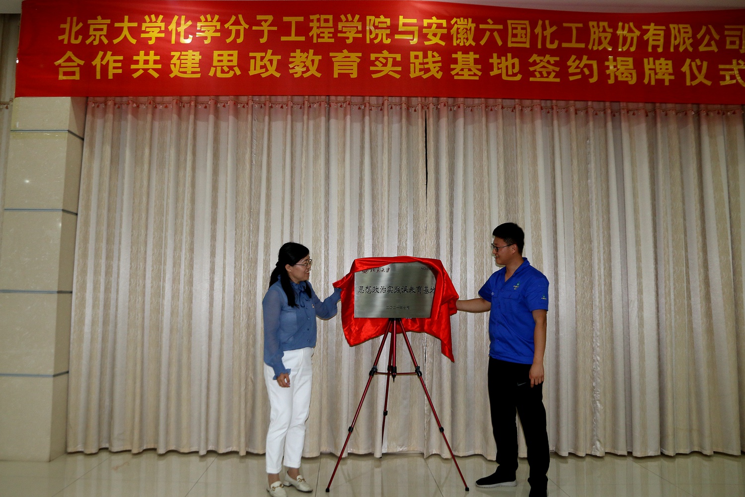 7月20日,北京大学化学与分子工程学院与yl23455永利集团公司举行签约揭牌仪式,合作共建思想政治实践课教育基地。集团公司党委书记、工会主席蒋升云,北大化学院分析测试中心副主任、高级工程师张莉,yl23455永利集团公司总经理马健等参加仪式。