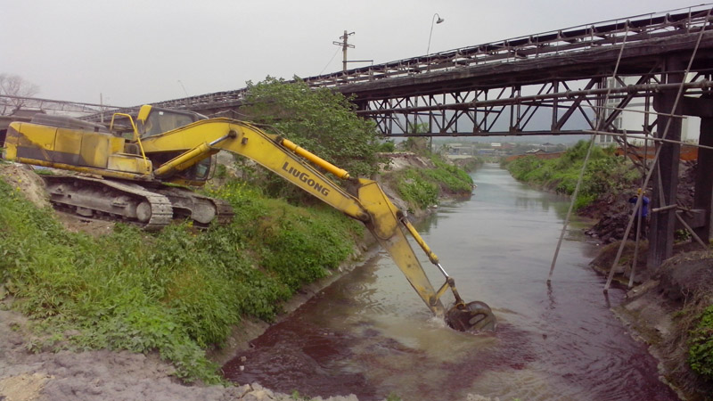 图一:清理淤积在排涝渠道中的污泥
