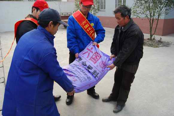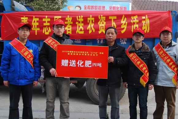 1月10日,yl23455永利集团团委和铜官山化工团委组织青年志愿者,赴铜陵市郊区五洲村开展“送化肥下乡”活动,给当地村民送去4吨化肥和几十本化肥使用手册,受到了当地农民群众的感谢和好评。图为铜化青年志愿者向五洲村村民赠送化肥。