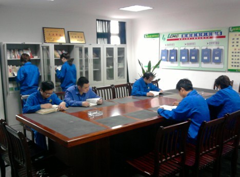 图为该公司磷铵车间员工工余时间在读书小组内的学习情景